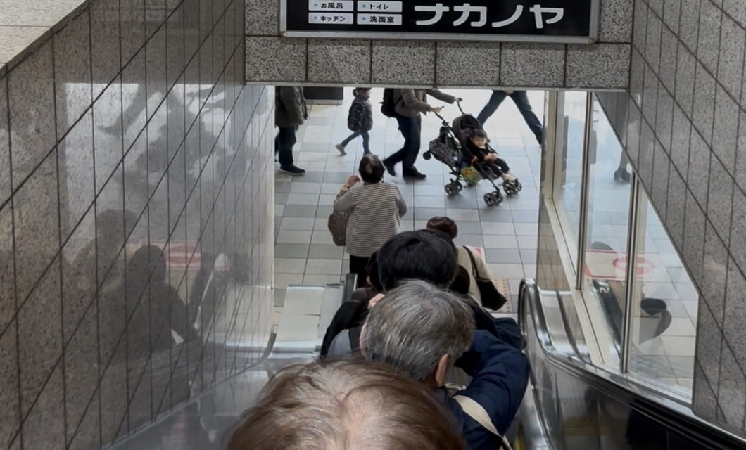 エスカレーターを下ります。