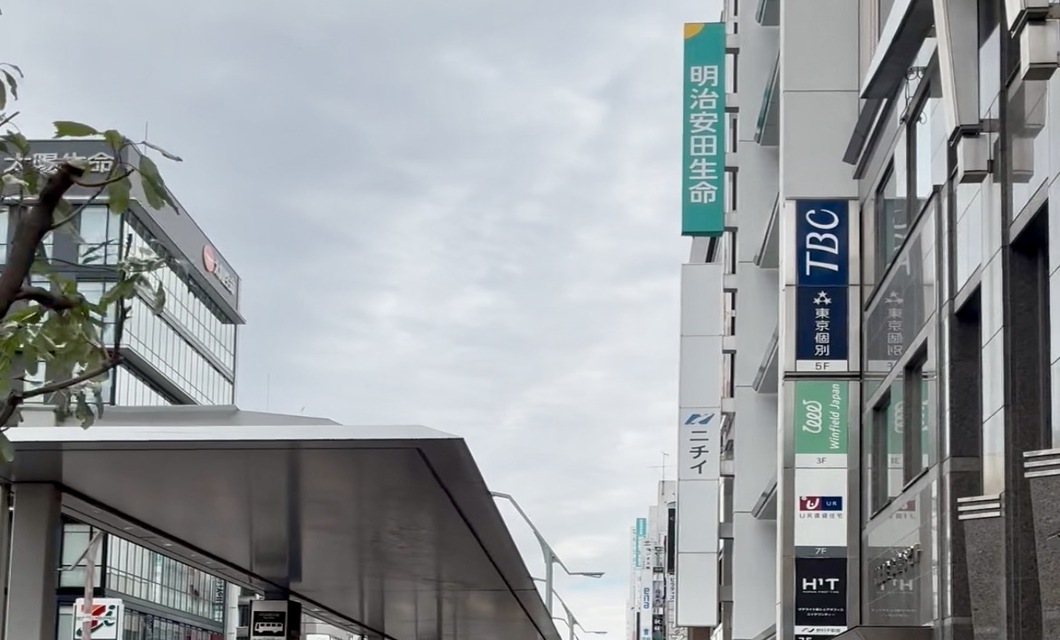 左方向に見える『明治安田生命』の看板が目印です。