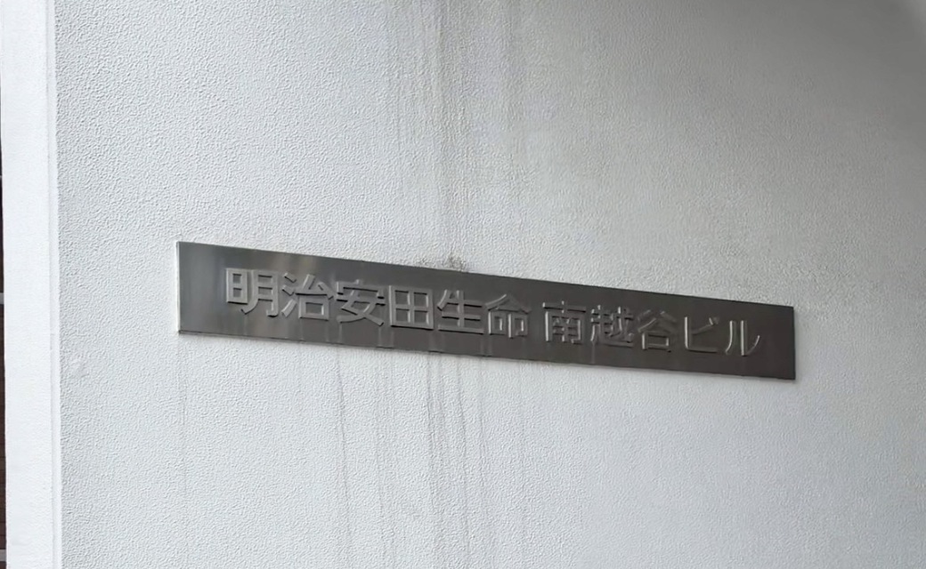 横断歩道を渡った目の前の『T-NET 南越谷店』の右隣が『明治安田生命ビル』です。
