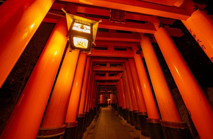 日本の人気観光地で1位2位を争う千本鳥居が見られる「伏見稲荷大社」へ。トンネルのように連なる真紅の鳥居は絶景です。